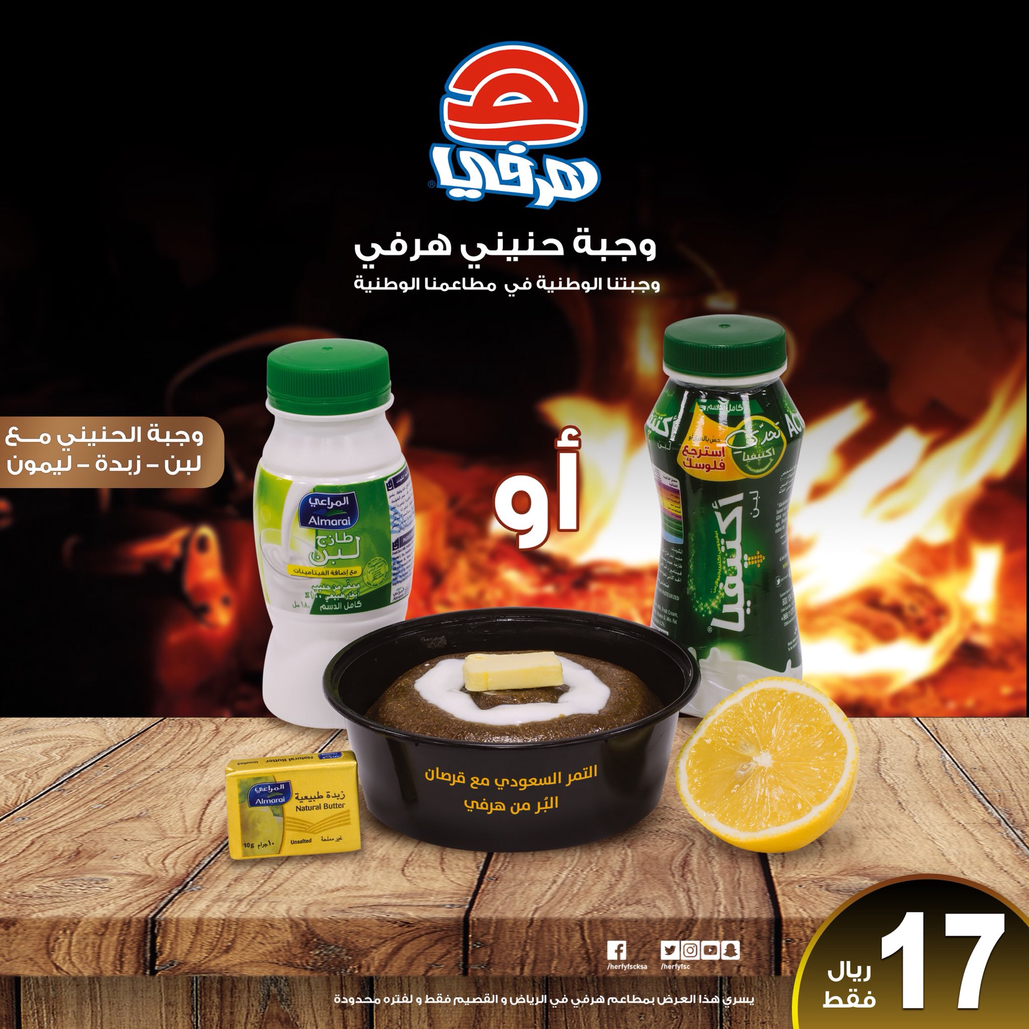 عروض مطاعم هرفي وجبة حنيني هرفي مع لبن وزبدة وليمون بـ17 ريال العروض والتخفيضات