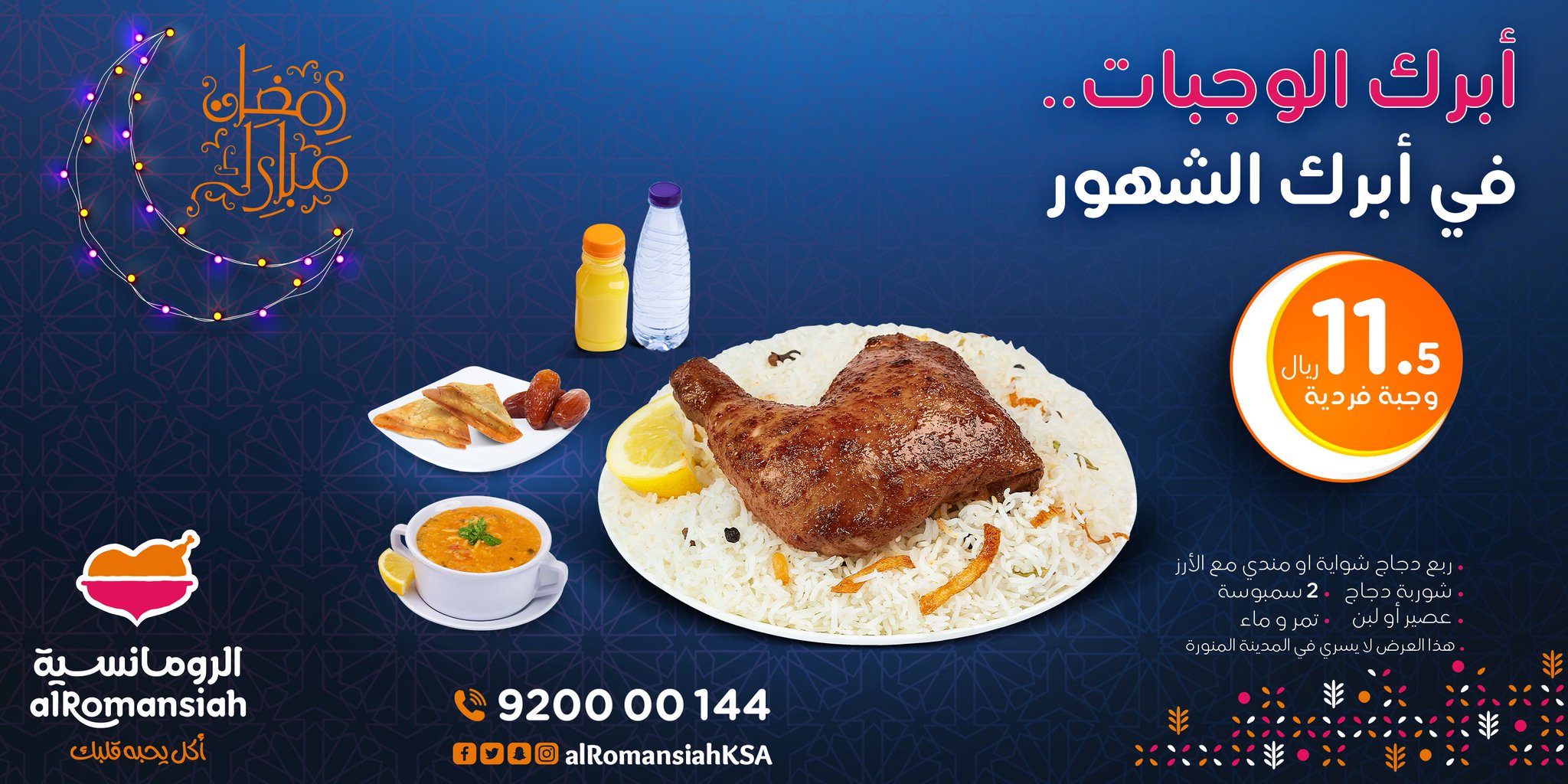 الرومانسية On Twitter أبرك الوجبات في أبرك الشهور ربع دجاج شواية أو مندي مع الرز وتمر وماء أو عصير وشوربة و 2 سمبوسة فقط بـ 11 5 ريال يسري العرض حتى