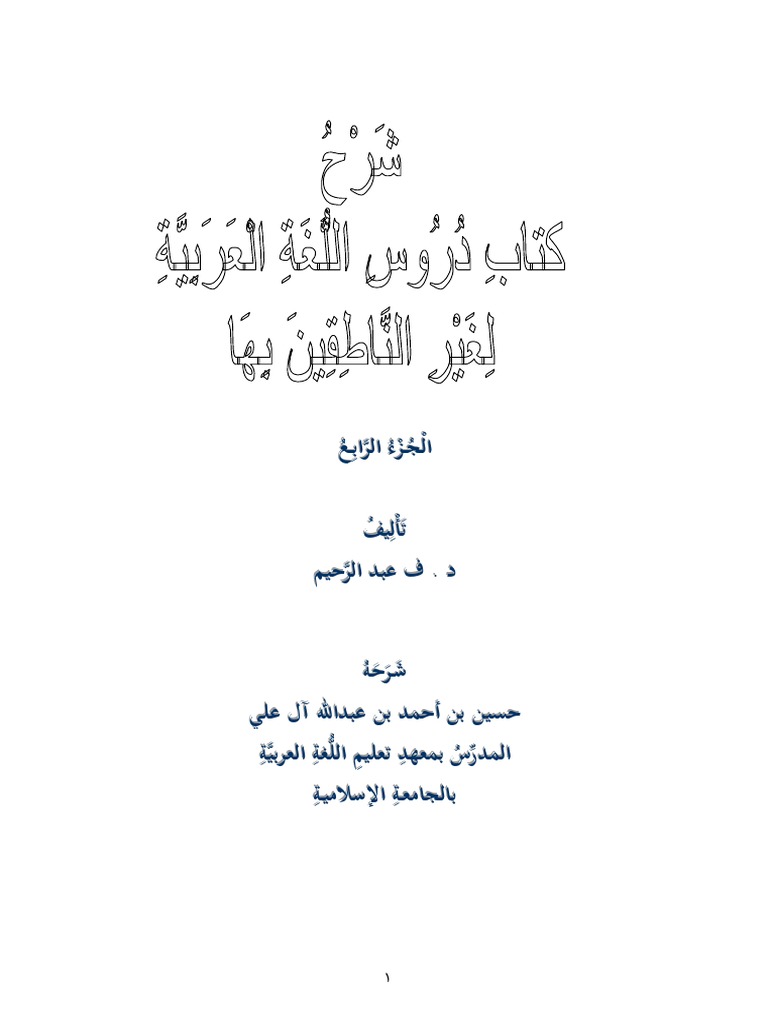 شرح كتاب دروس اللغة العربية لغير الناطقين بها ٤ Pdf