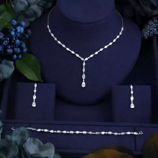 طقم زركون مطلي ذهب ابيض مجوهرات ألماسة