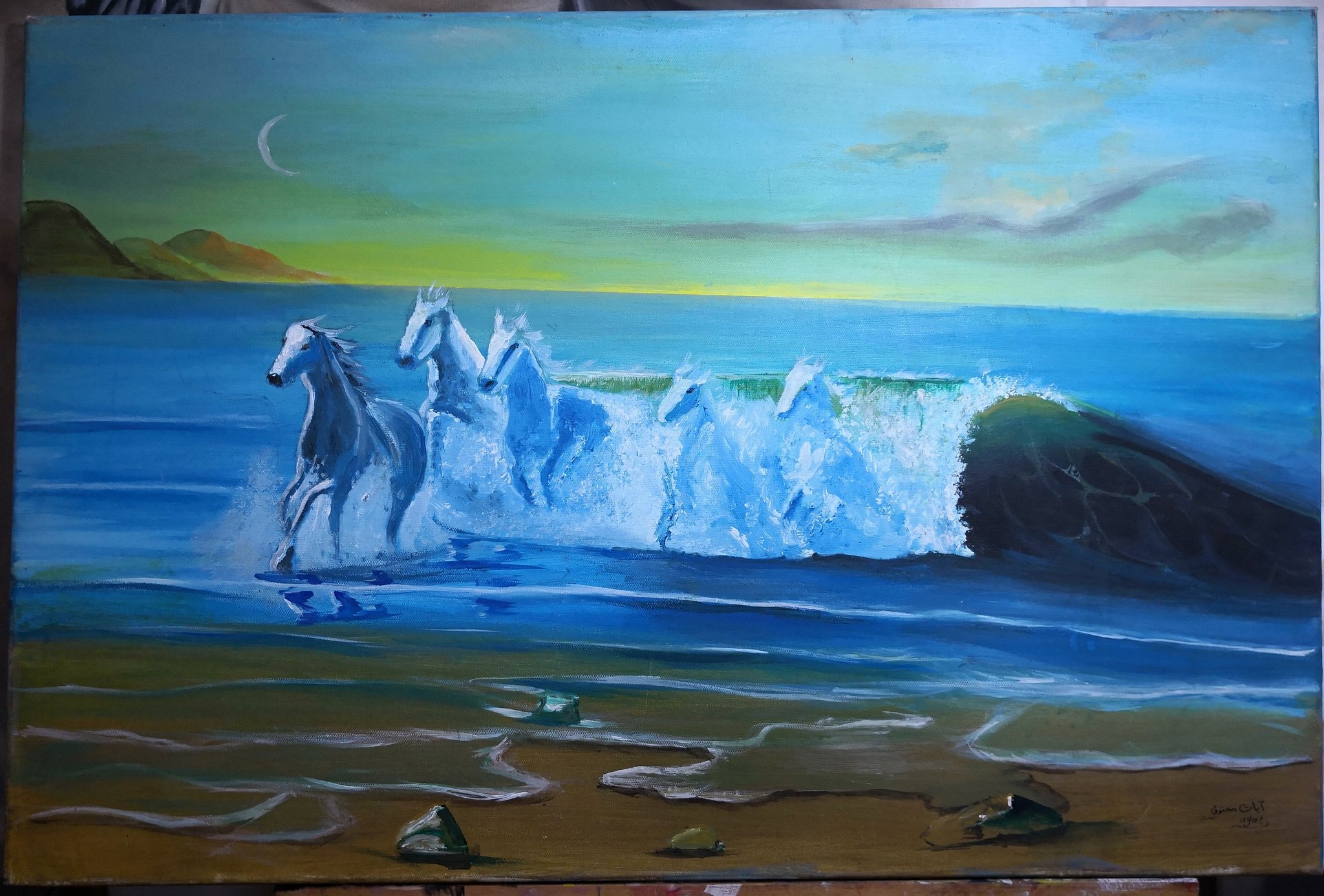أنور Anwer On Twitter خيول البحر لوحة رائعة سريالية بألوان الأكريليك على قماش كانڤاس لـ الفنانة التشكيلية Omsayadkamal مقاسات اللوحة 76 50 سم للبيع رسم فن Https T Co Ooqpppwtyq