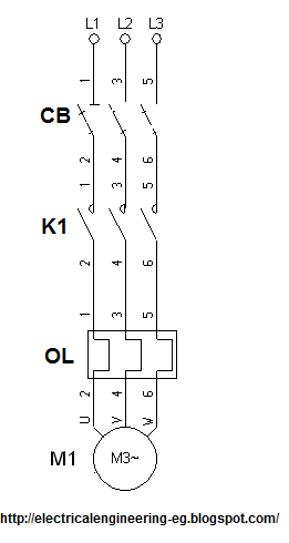 كلاسيك كنترول دائرة القوى و التحكم لتشغيل محرك واحد موقع الهندسة الكهربية