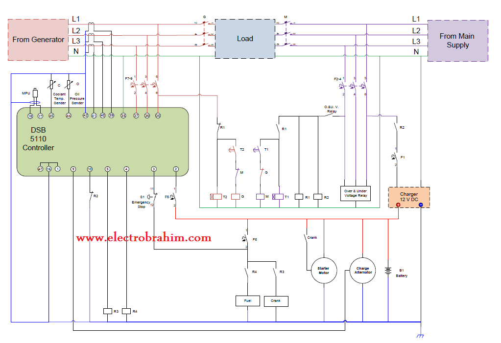 دائرة لوحة التحكم Ats في تغذية حمل من مصدرين مختلفين