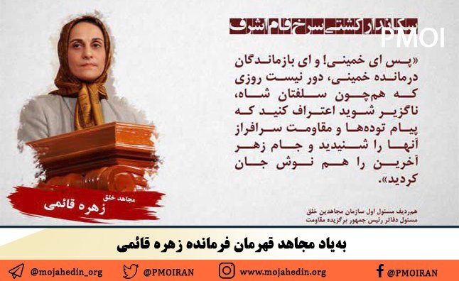 97دریچه امید V Twitter ۱۰ شهریور ۱۳۹۲ روز قتل عام ۵۲ مجاهد خلق با یورش مزدوران لشکر کثیف مالکی پسرخوانده ولی فقیه ارتجاع که در آن فرمانده والا مقام زهره قائمی با