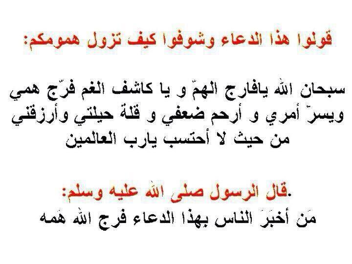 اللهم فارج الهم كاشف الغم مجيب دعوة المضطرين رحمان الدنيا والآخرة ورحيمهما أنت. كان عيسى بن مريم يعلمه أصحاب ه قال. يا فارج الهم ويا كاشف الغم فر ج همي ويسر أمري وارحم ضعفي وقلة حيلتي وارزقني من حيث لا أحتسب يا رب العالمين قال الرسول صلى الله عليه وسلم. من أخبر سبعة من الناس بهذا الدعاء فرج الله همه.