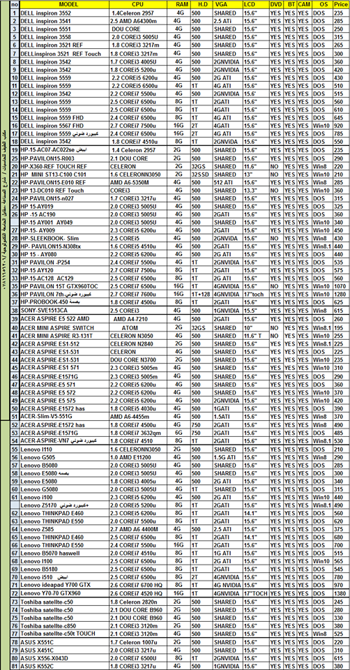 اسعار الحاسبات في العراق الاسعار بالدولار قائمة 30 11 2016