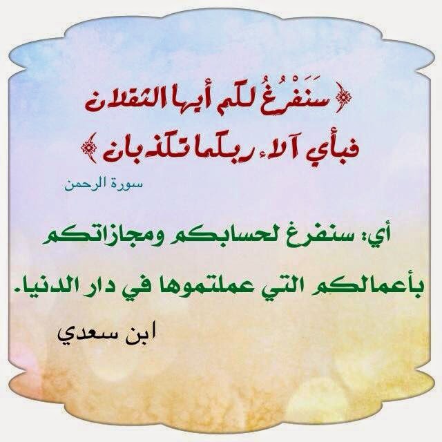 الأمــل ب الل ـه V Twitter س ن ف ر غ ل ك م أ ي ه ا الث ق لان والله كل كبيرة وصغيرة ستحاسب عليها ولن تفلت تدبر هدايات الرحمن Rawai3 Quran