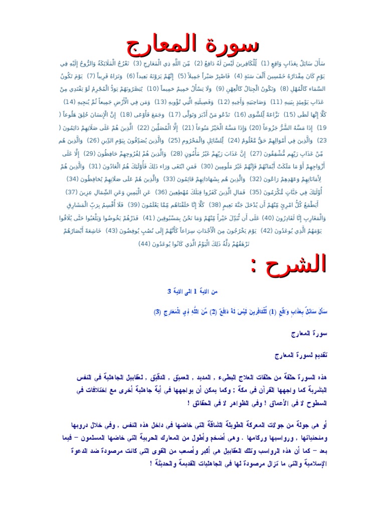 شرح وتفسير سورة المعارج Surah Al Maarij معاني الأسماء ومعاني الكلمات وتفسير القرآن الكريم