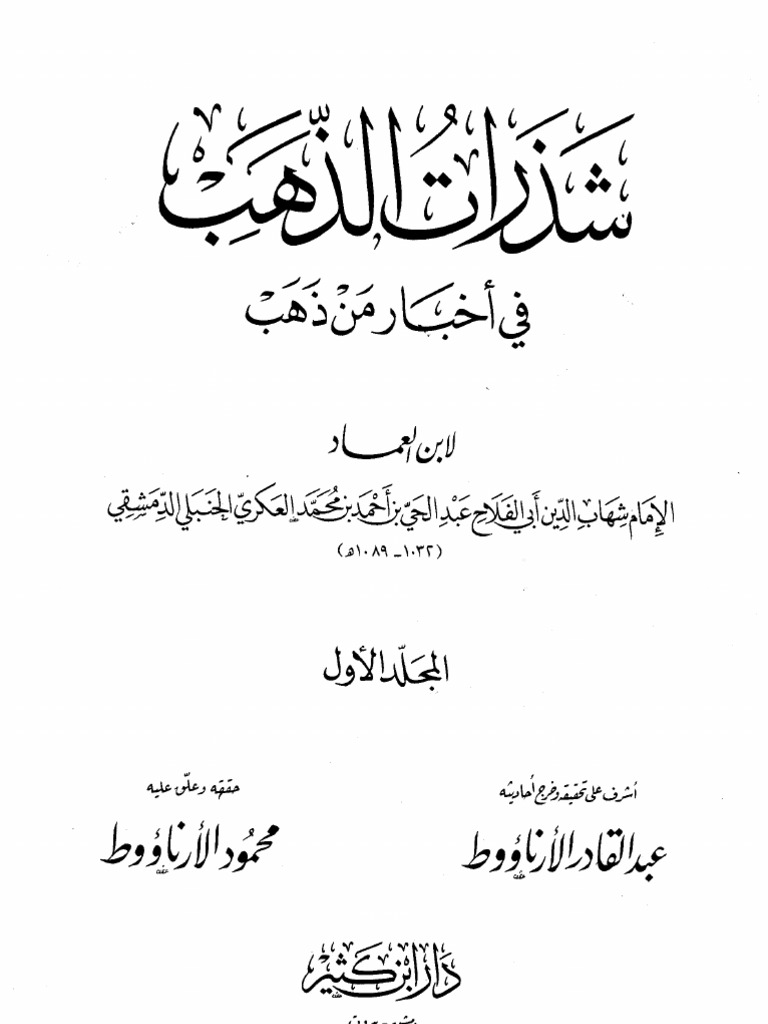 تحميل وقراءة كتاب شذرات الذهب في أخبار من ذهب ت الأرناؤوط تأليف عبد الحي بن أحمد