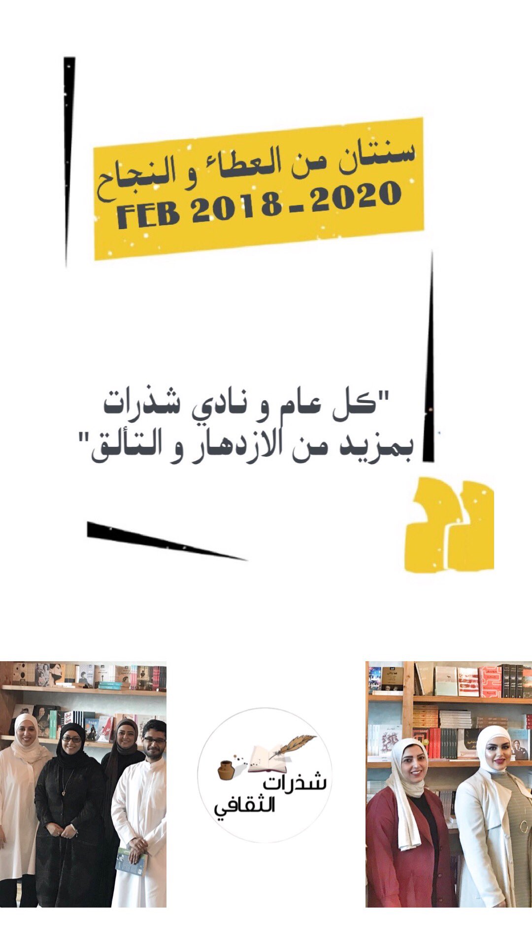 نادي شذرات الثقافي On Twitter بمناسبة مرور سنتين من التأسيس نلتقي بكم غدا إن شاء الله ٨ فبراير٢٠٢٠ الساعة ١١ صباحا في أوبت كافيه القاعة العلوية احضر
