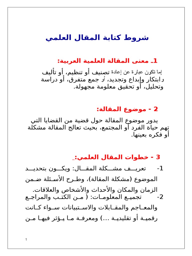 شروط كتابة المقال العلمي 1